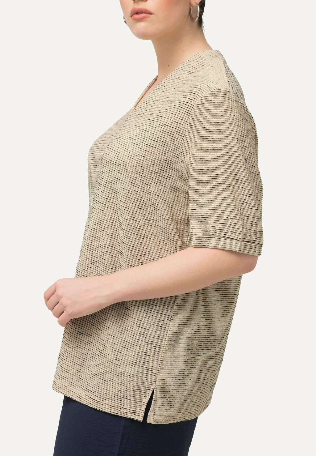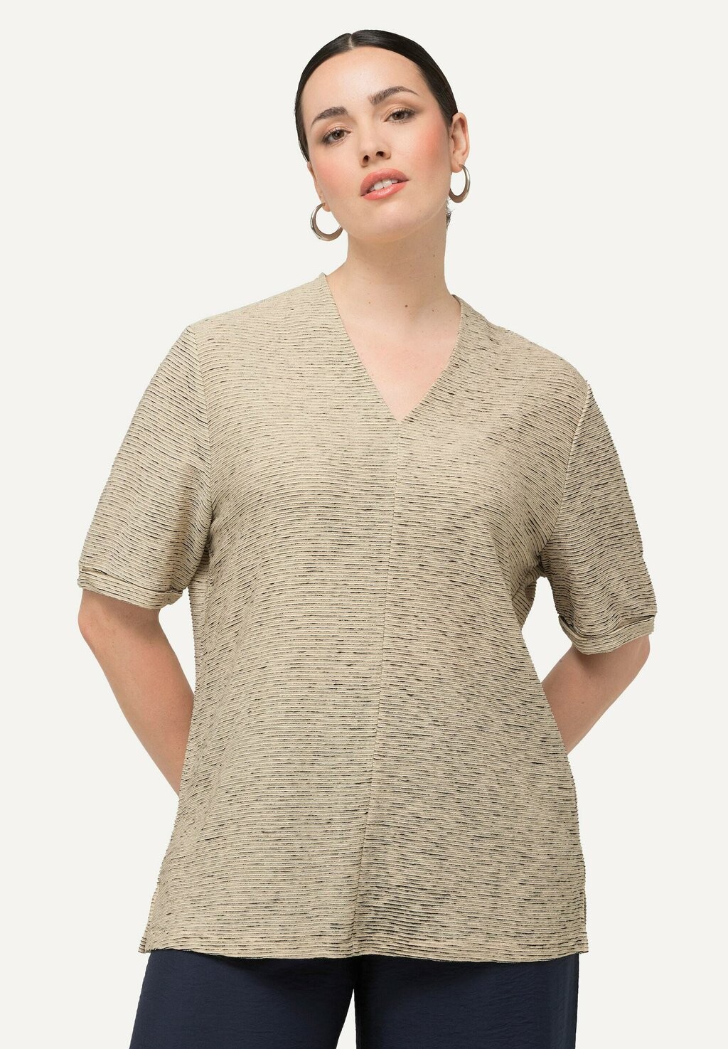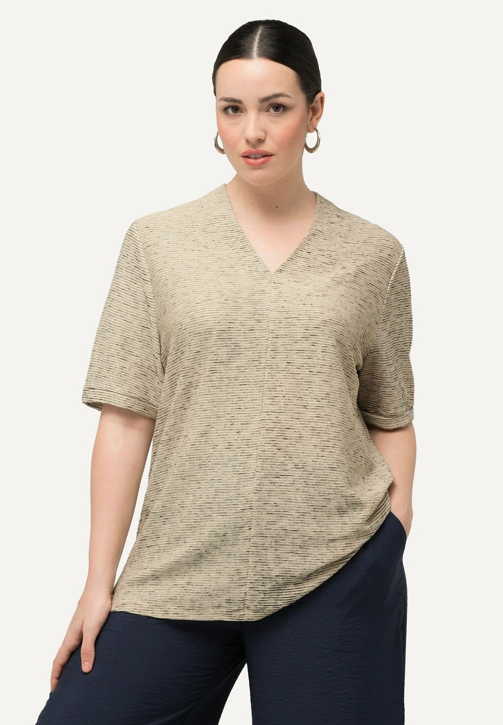 Футболка с принтом TEXTURED SHORT SLEEVE V-NECK Ulla Popken, бежевый