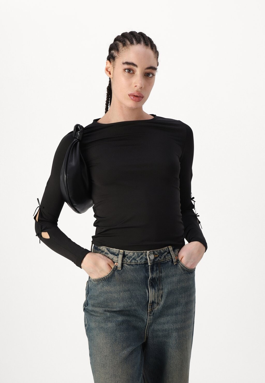 Топ с длинными рукавами PCSELINA O-NECK BOW Pieces, черный 4 110₽
