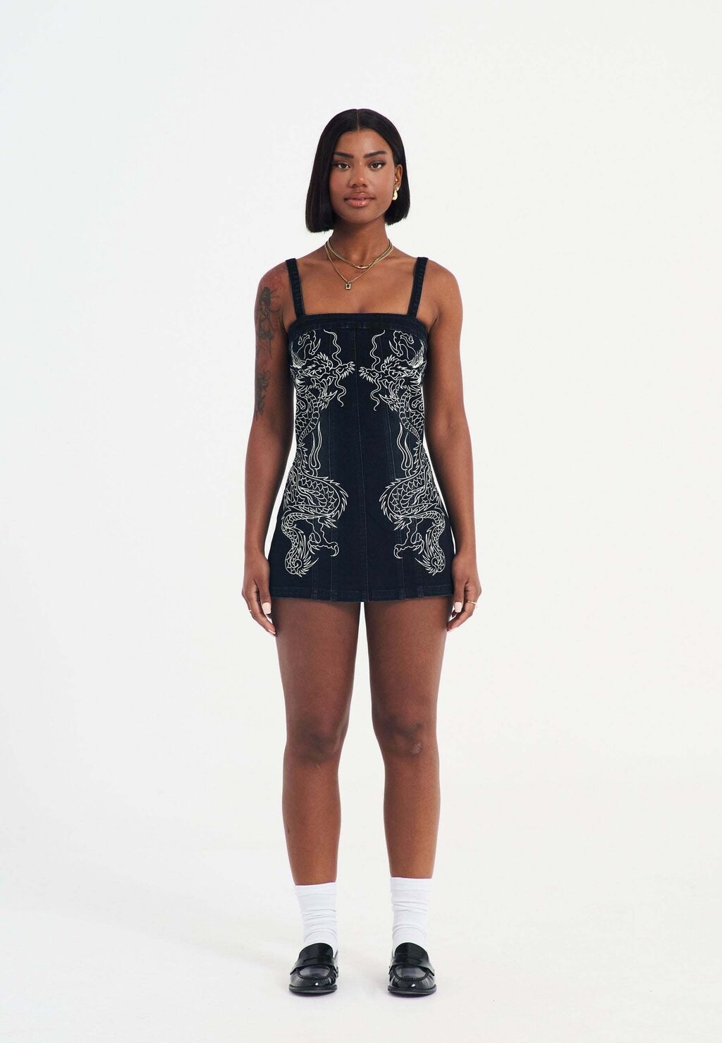 Платье из денима DRAGON FLAME Ed Hardy, черный