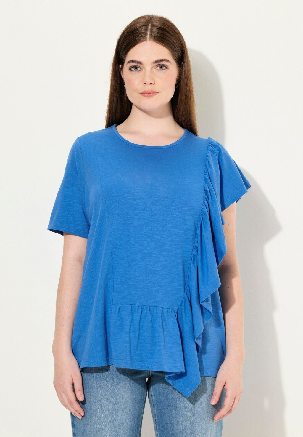 Футболка с принтом ASYMMETRIC FLOUNCE TEE Ulla Popken, синий