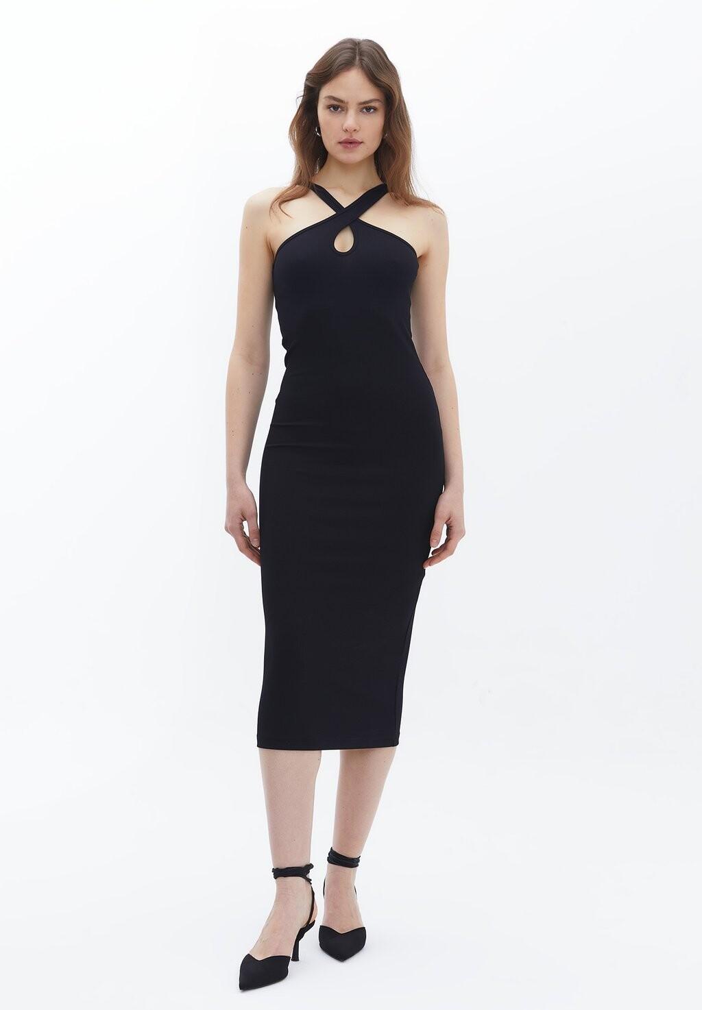 Платье-футляр WITH ASYMMETRIC NECK OXXO, черный