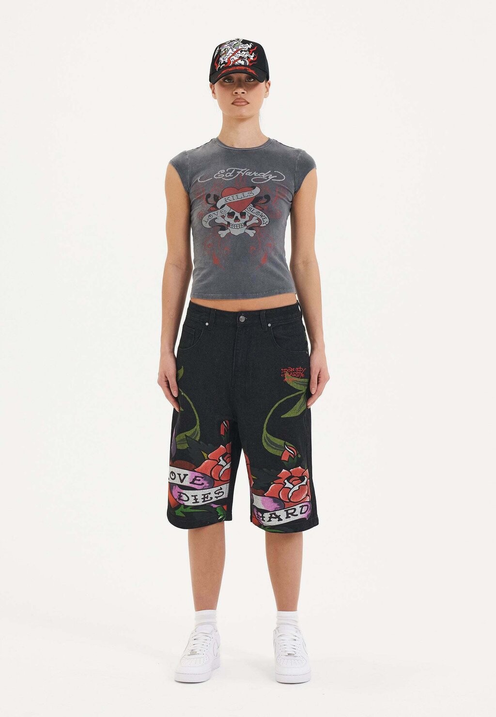 Джинсовые шорты CHERRY LOVE BOMB Ed Hardy, черный
