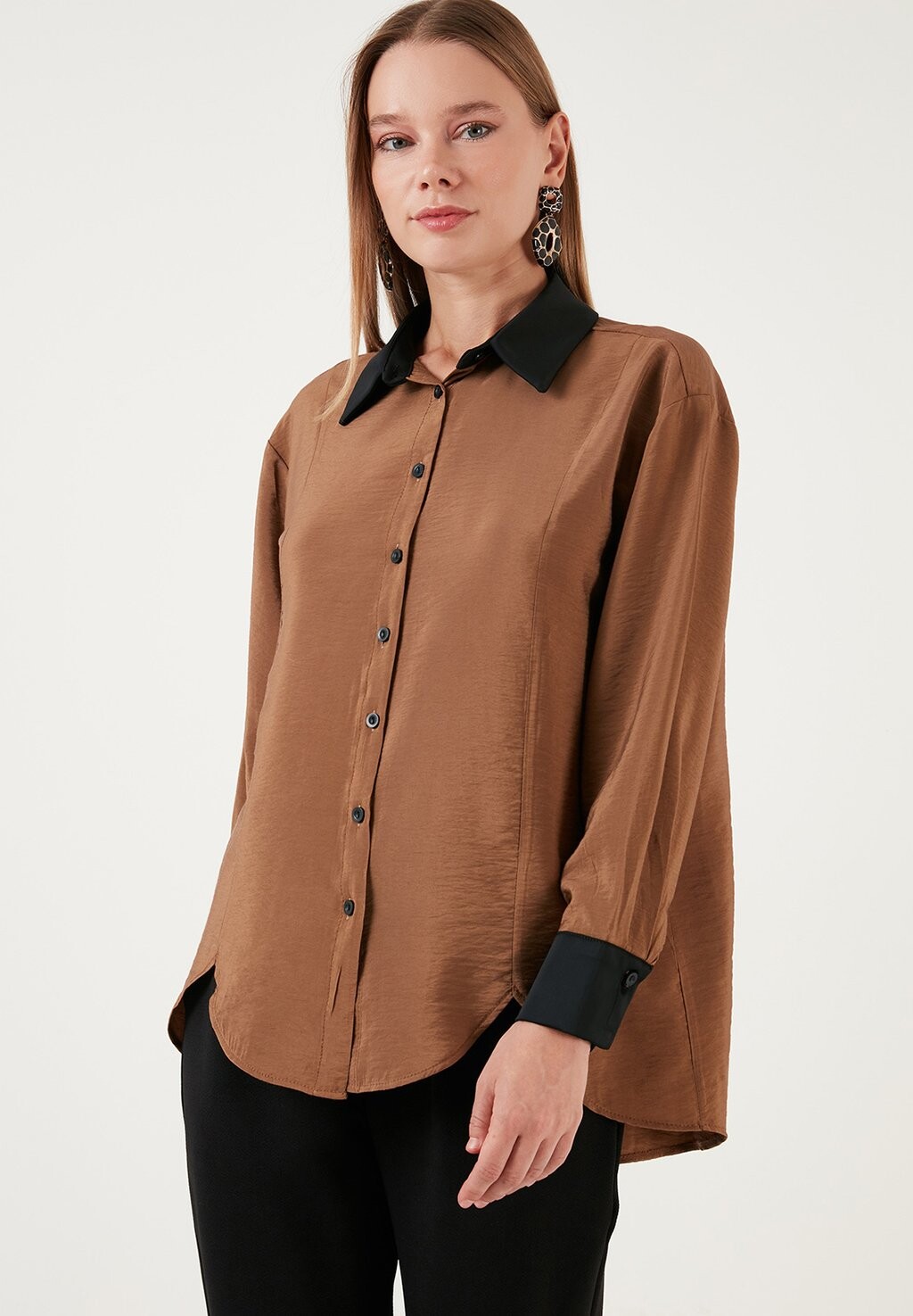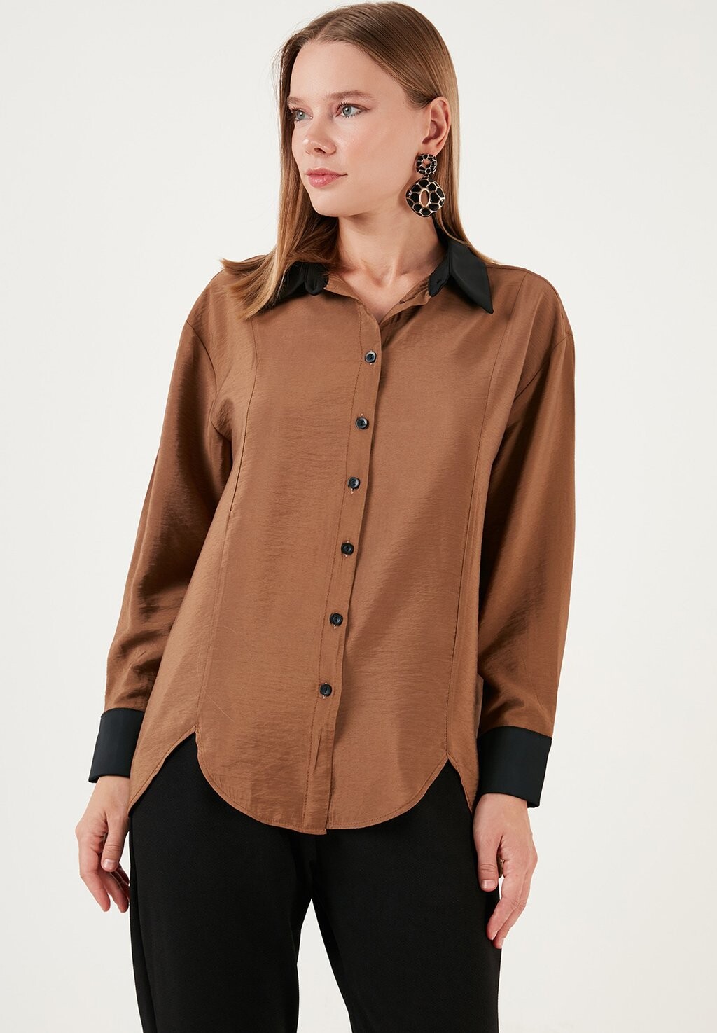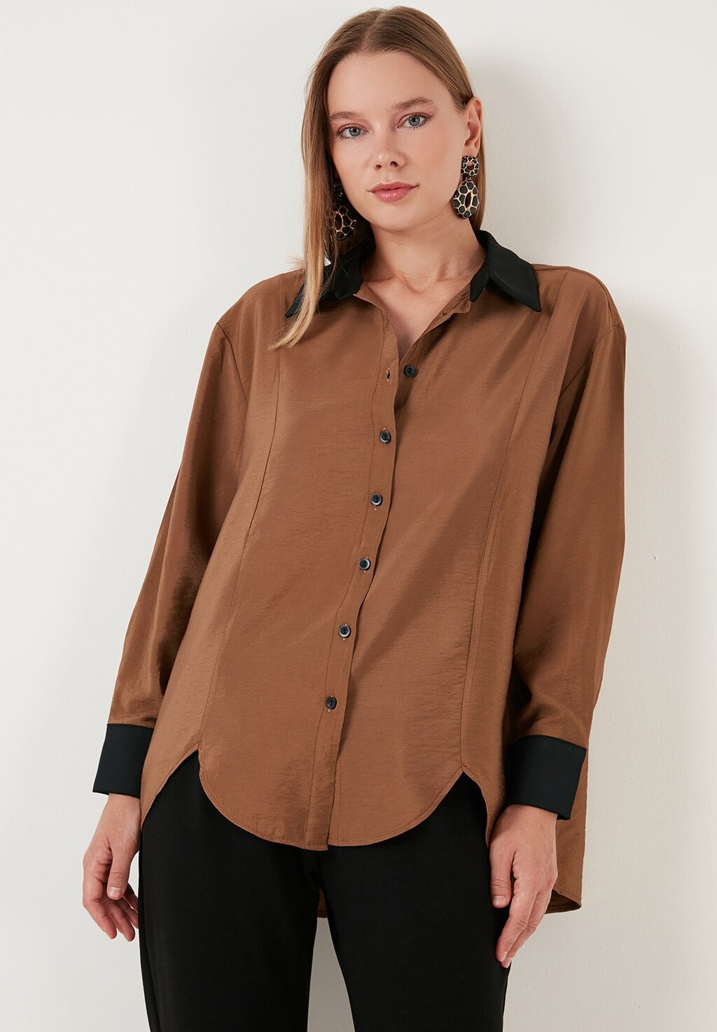 Блузка на пуговицах LOOSE FIT LELA, коричневый