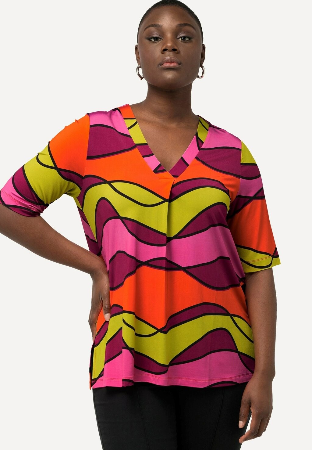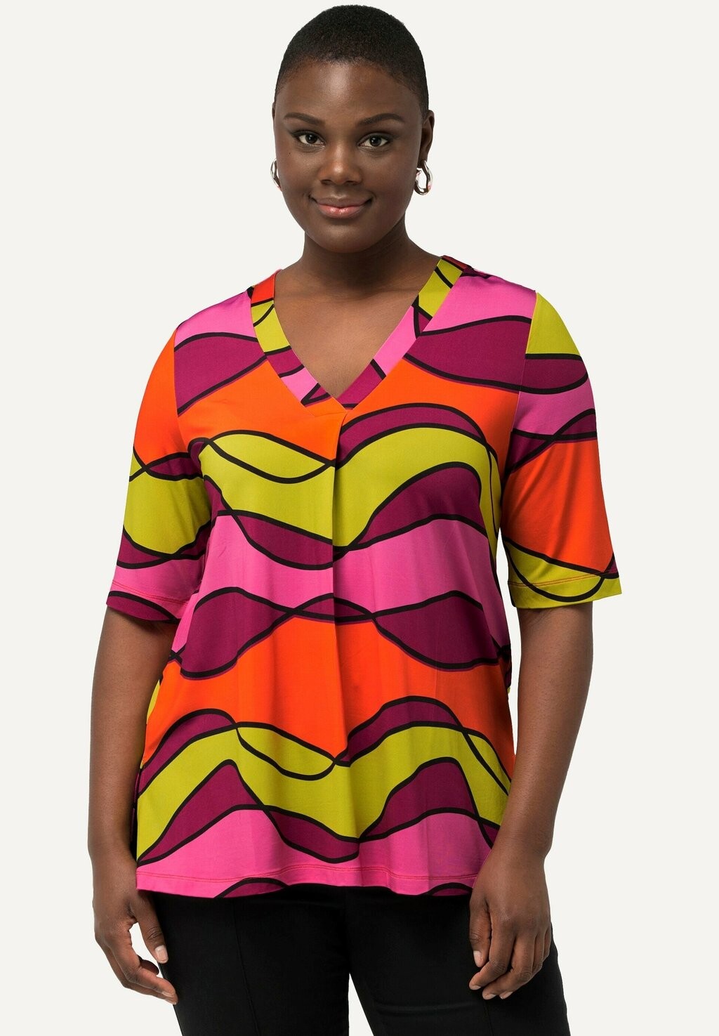 Блуза WAVE PRINT SHORT SLEEVE SLINKY Ulla Popken, оранжевый