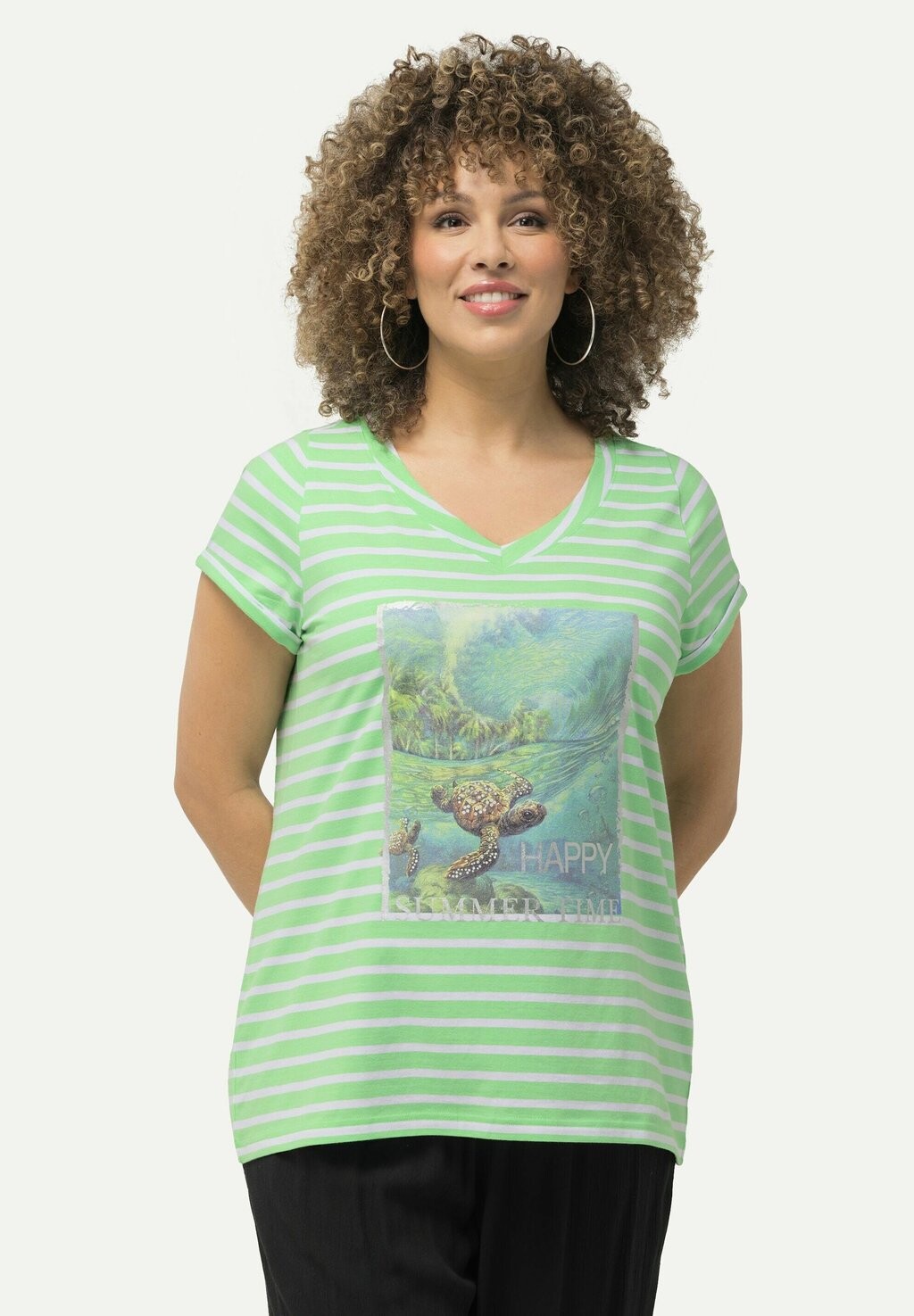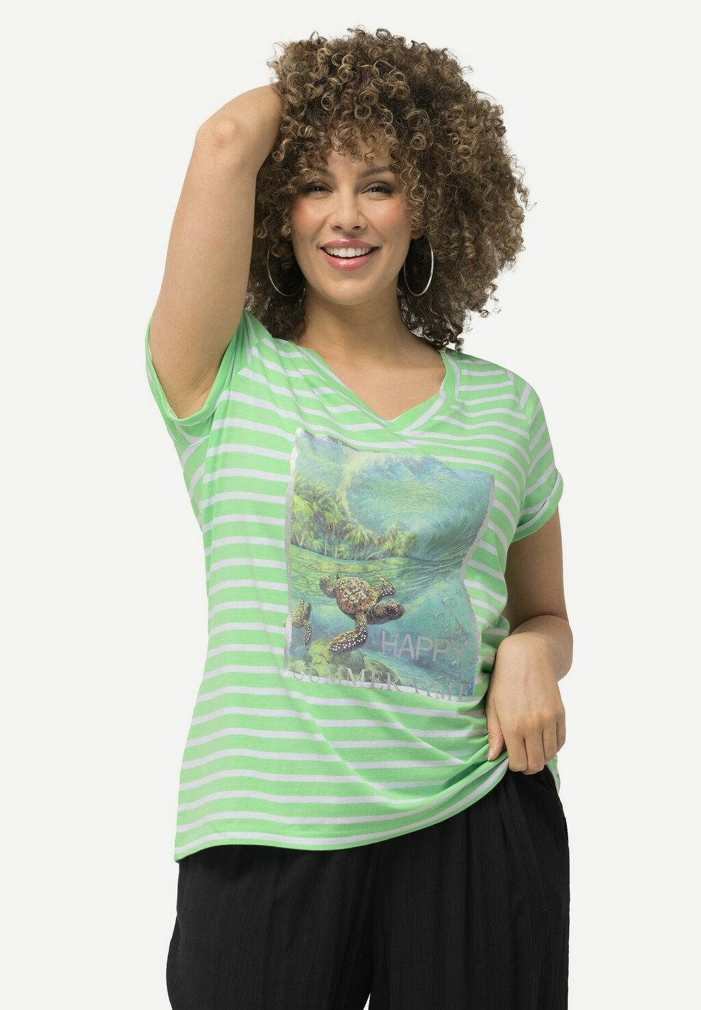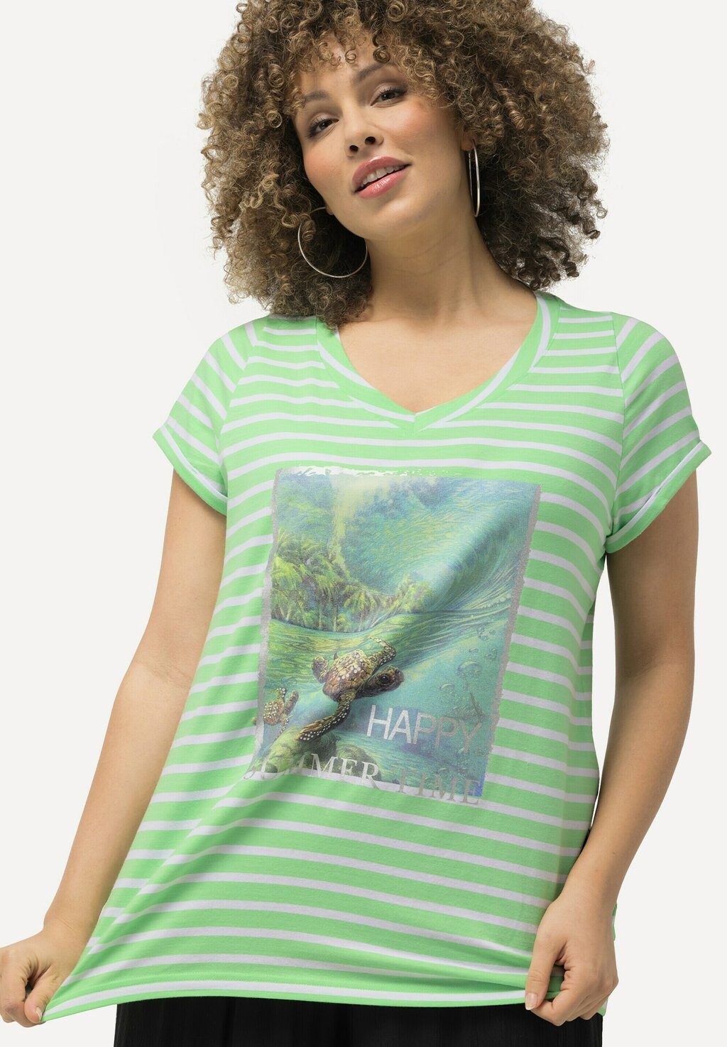 Футболка с принтом STRIPED TURTLE SHORT SLEEVE GRAPHIC TEE Ulla Popken, мята