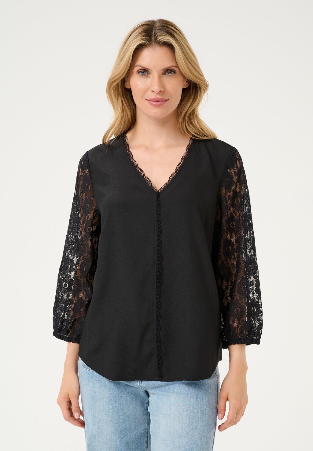 Блуза KASILJA V-NECK LACE Kaffe, цвет Mottled Black
