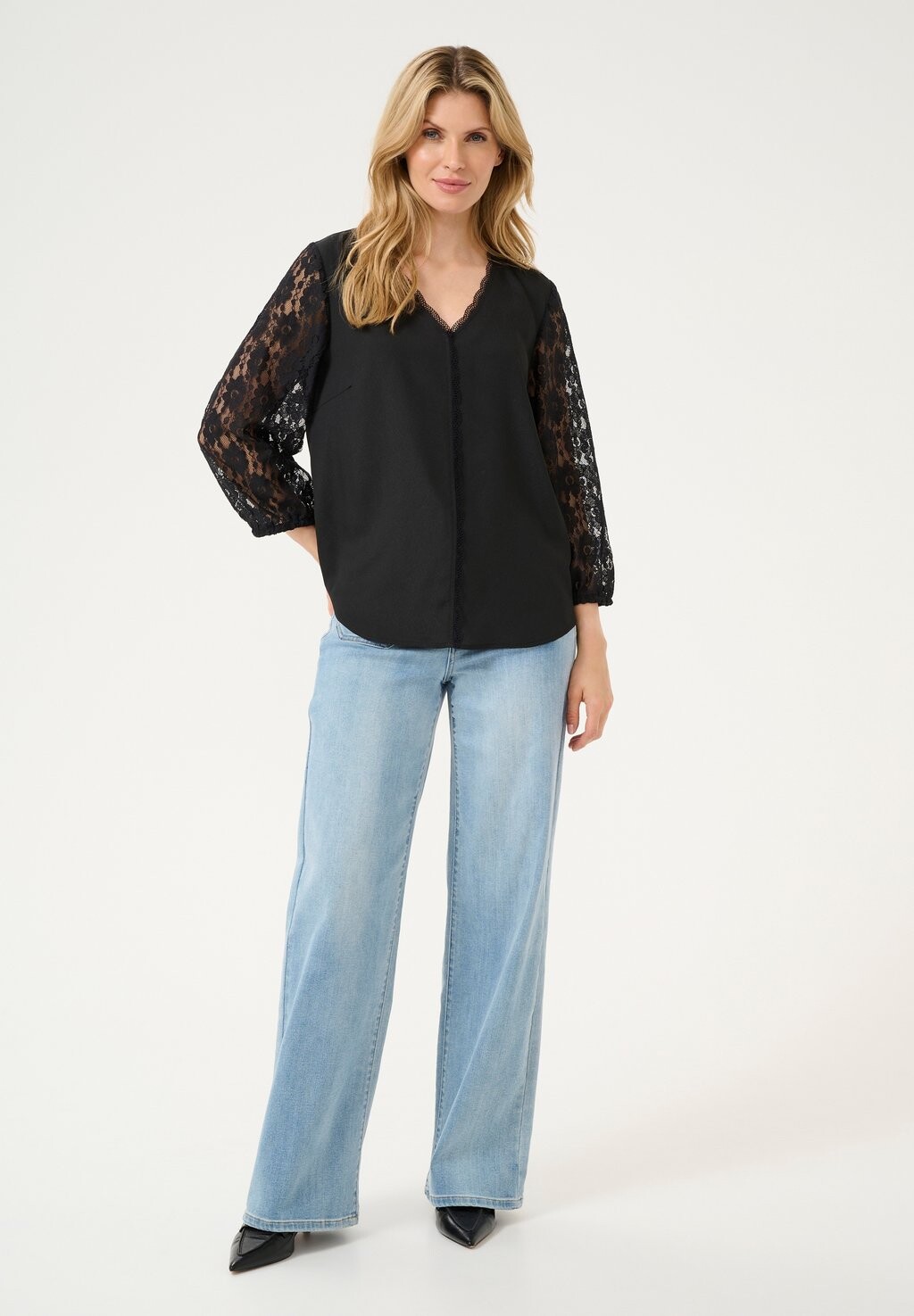 Блуза KASILJA V-NECK LACE Kaffe, цвет Mottled Black 4 984₽