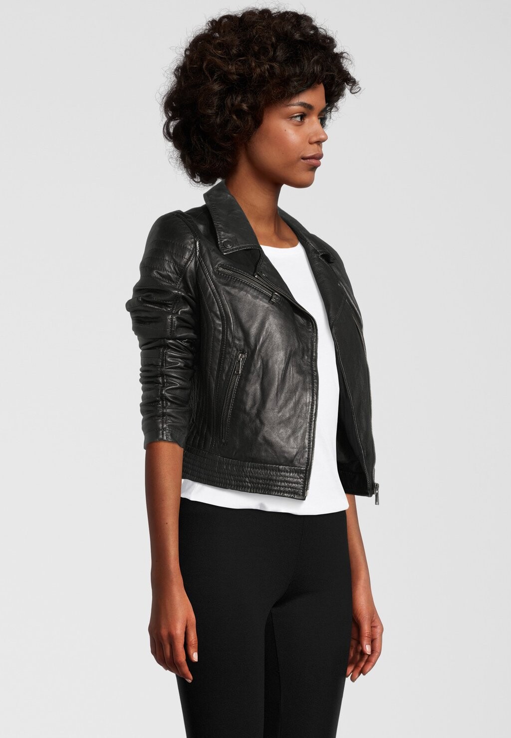 Кожаная куртка MIT STEPPNAHT-DETAILS H.I.S, черный