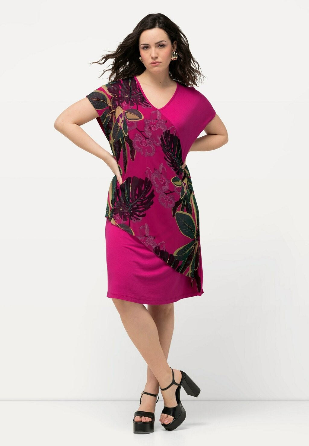 Платье из джерси FLORAL PANEL SLEEVE Ulla Popken, розовый