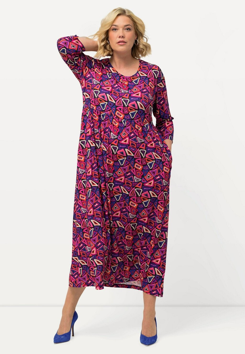 Платье макси MATTE GRAPHIC PRINT EMPIRE A-LINE POCKET Ulla Popken, розовый
