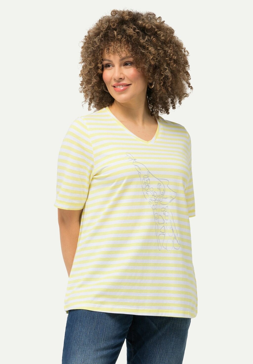 Футболка с принтом STRIPED WILDLIFE GRAPHIC Ulla Popken, желтый