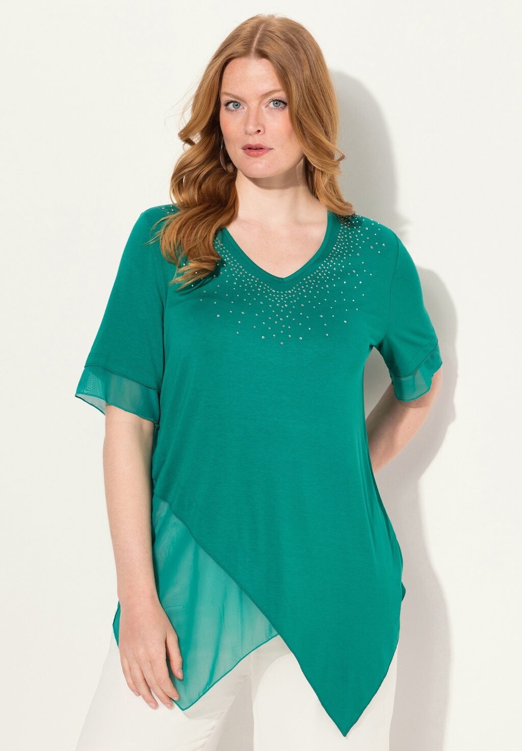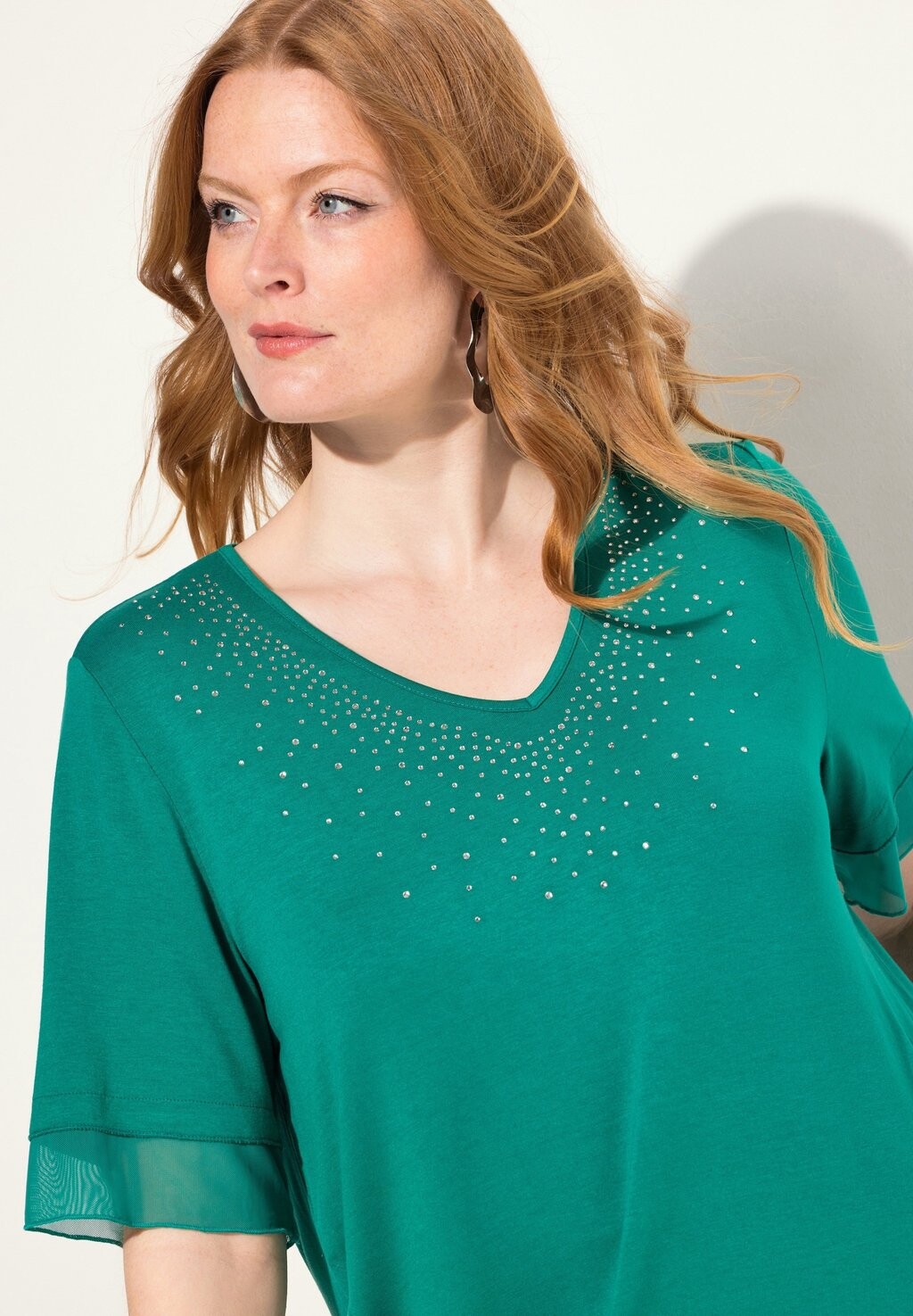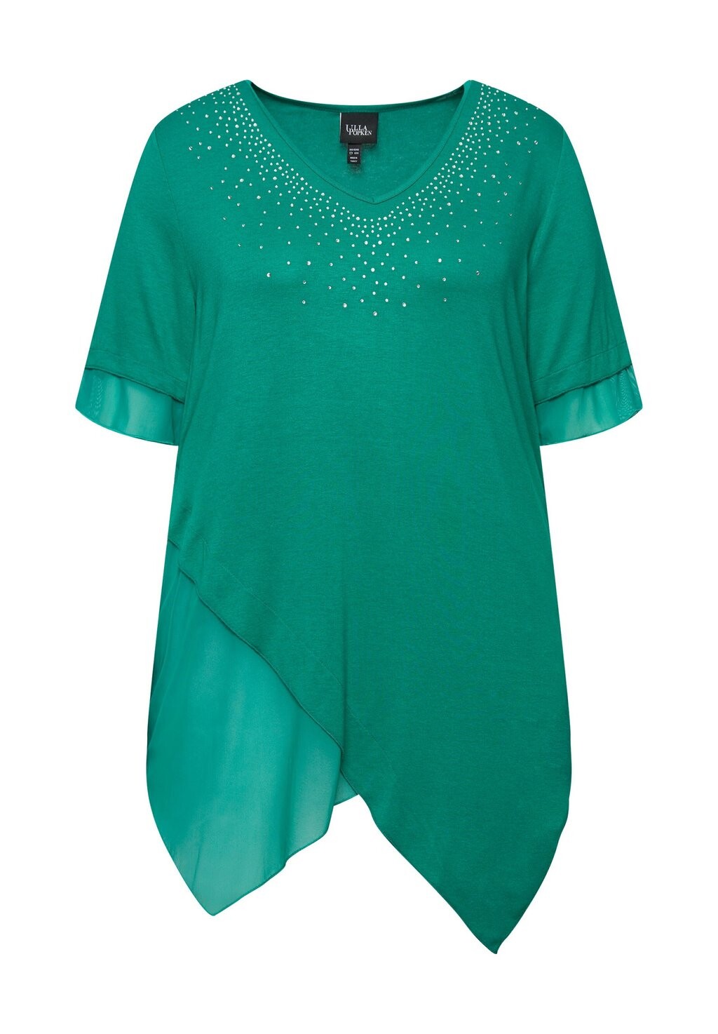 Блуза LAYERED SHORT SLEEVE RHINESTONE Ulla Popken, бирюзовый