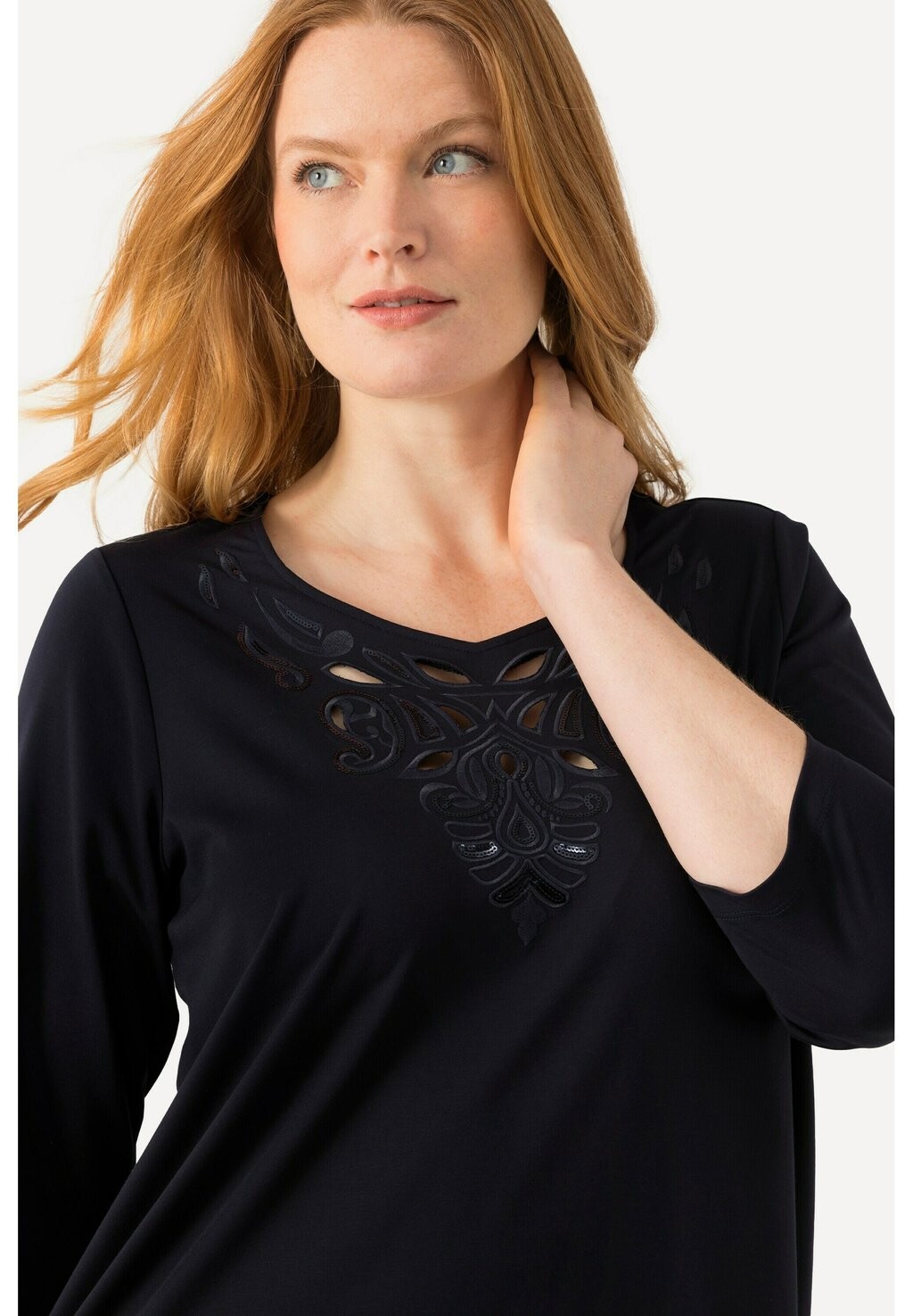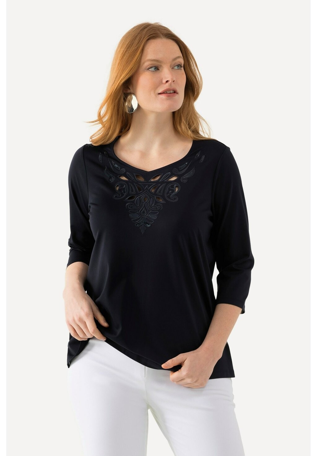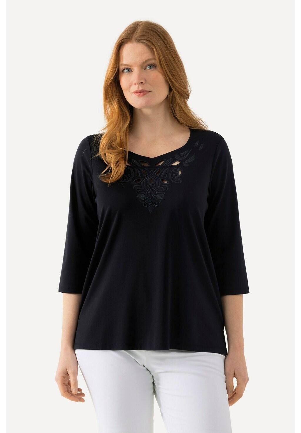 Блуза CUTOUT NECKLINE 3/4 SLEEVE TEE Ulla Popken, темно-синий