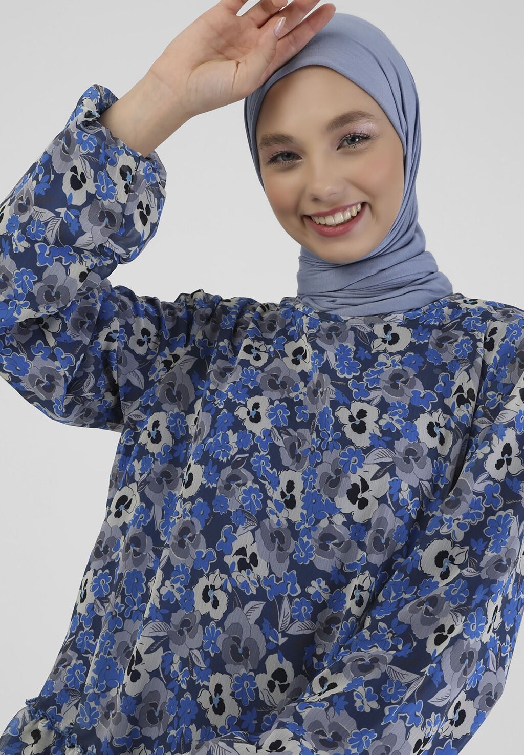Туника SAXE-FLORAL-CREW NECK -BENIN Modanisa, темно-синий