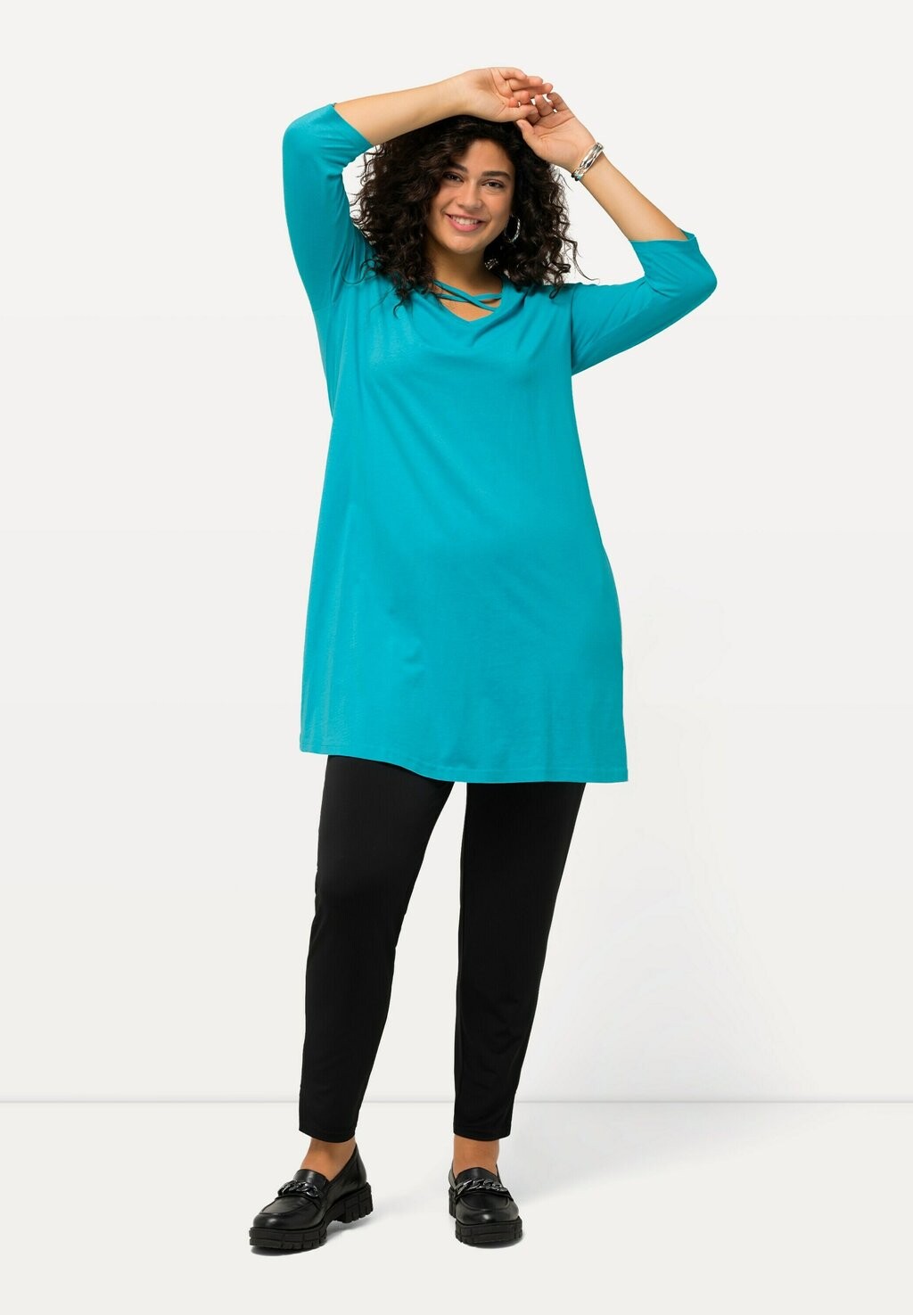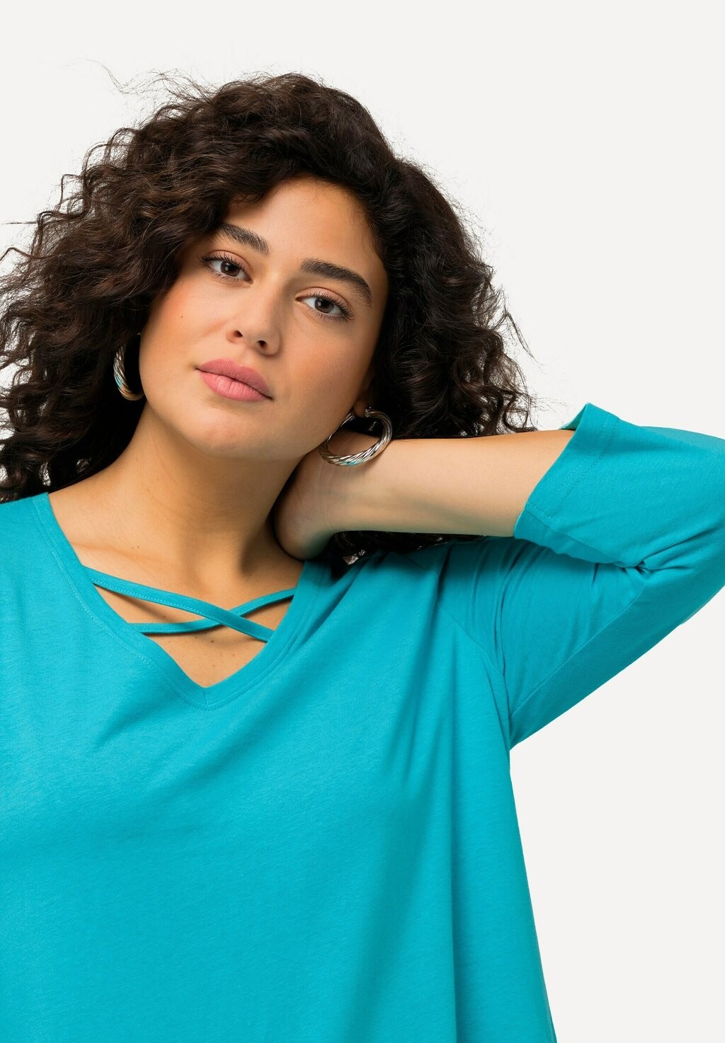 Топ с длинными рукавами V-AUSSCHNITT, 3/4-ARM Ulla Popken, бирюзовый