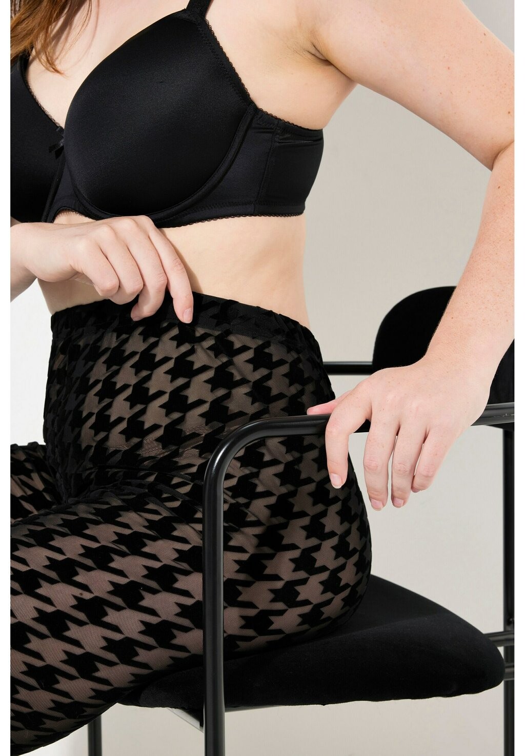 Леггинсы SHEER FLOCKED HOUNDSTOOTH  Leggings Ulla Popken, черный