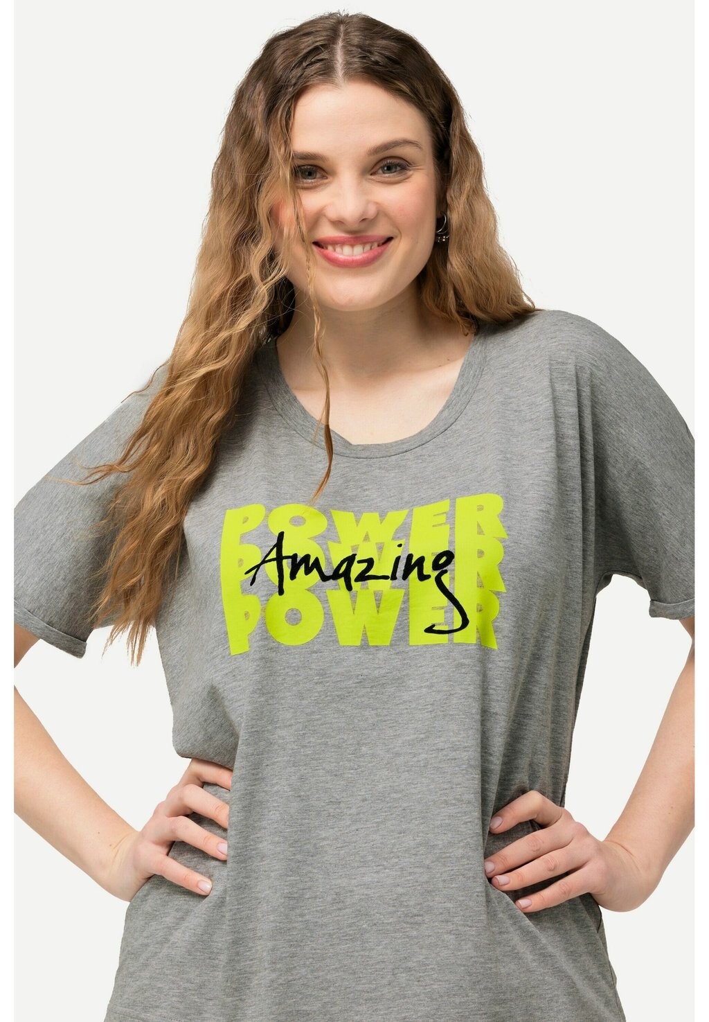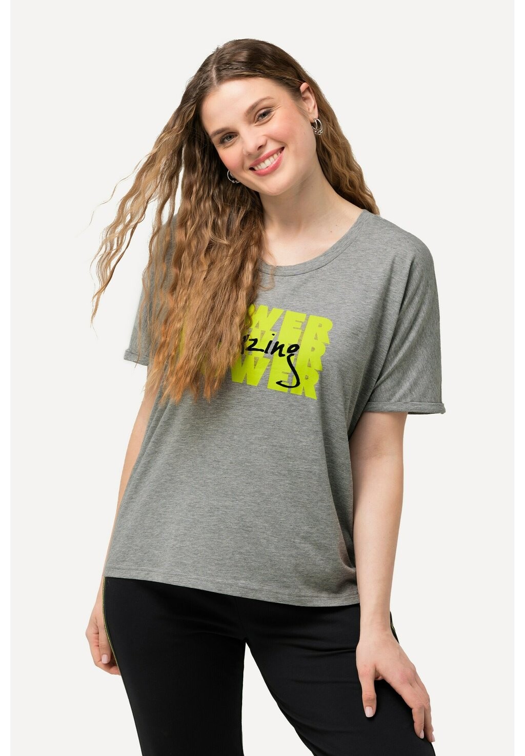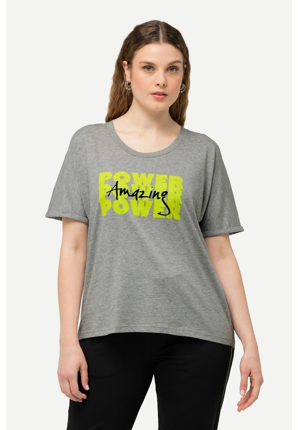Футболка с принтом GRAPHIC LETTERED SHORT SLEEVE Ulla Popken, цвет Mottled Light Grey