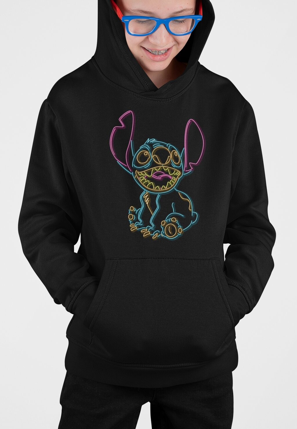 Толстовка с капюшоном LILO STITCH NEON STITCH Disney, черный