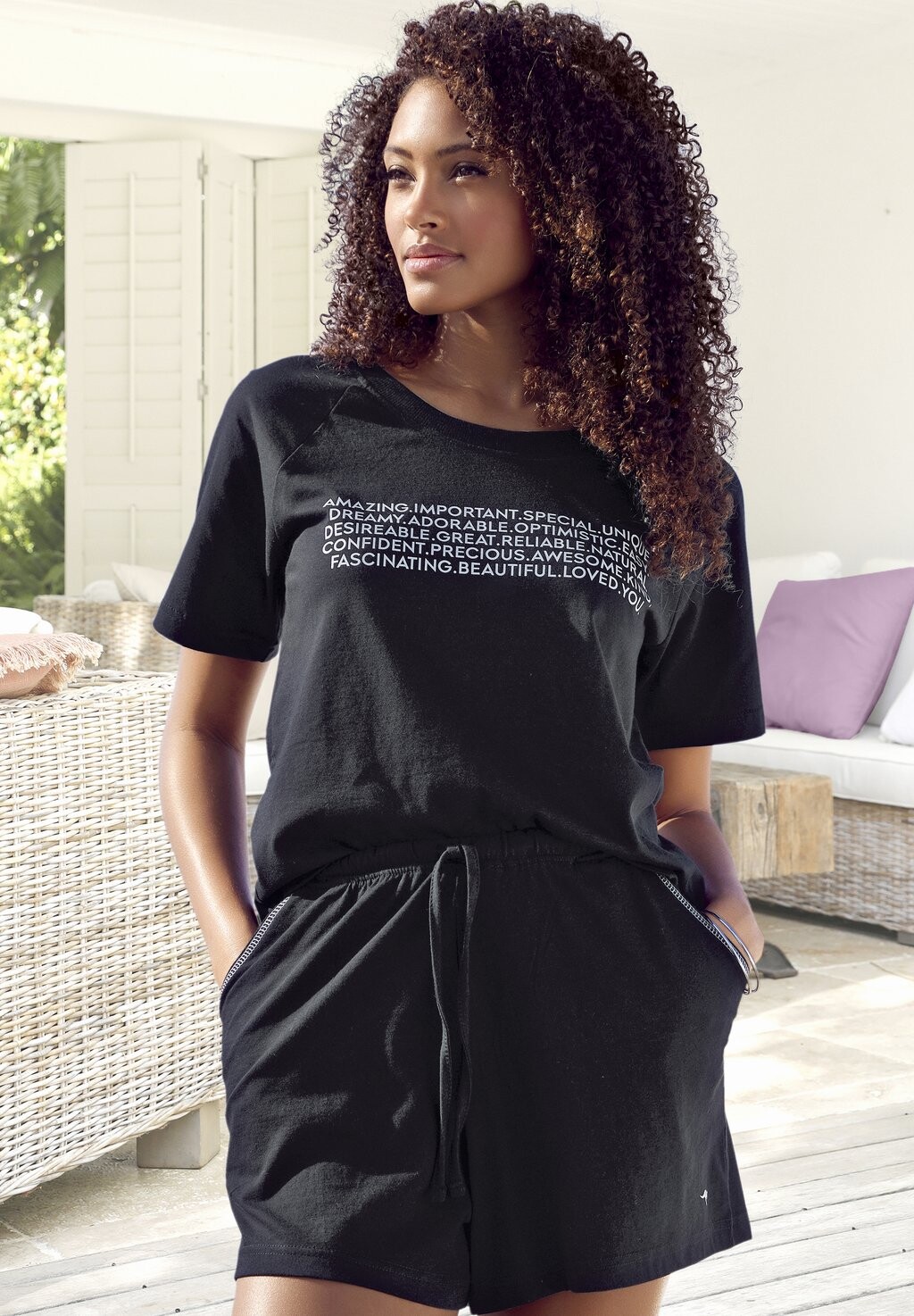 Пижамный комплект VD SLOGAN LASCANA, черный