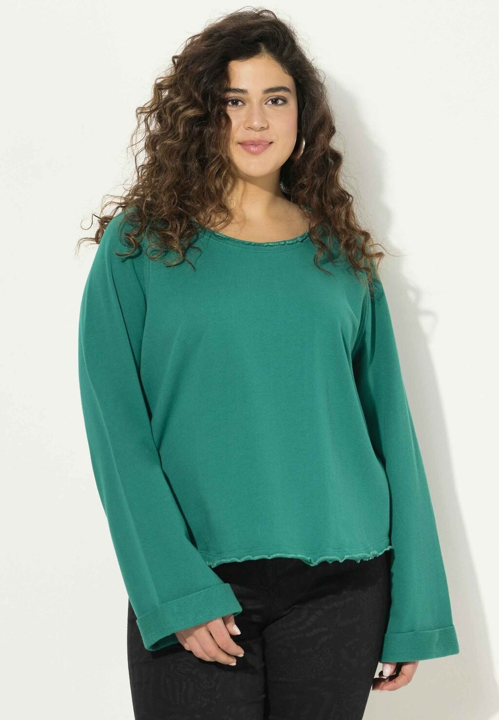 Толстовка ROLLED EDGE LONG SLEEVE Ulla Popken, зеленый