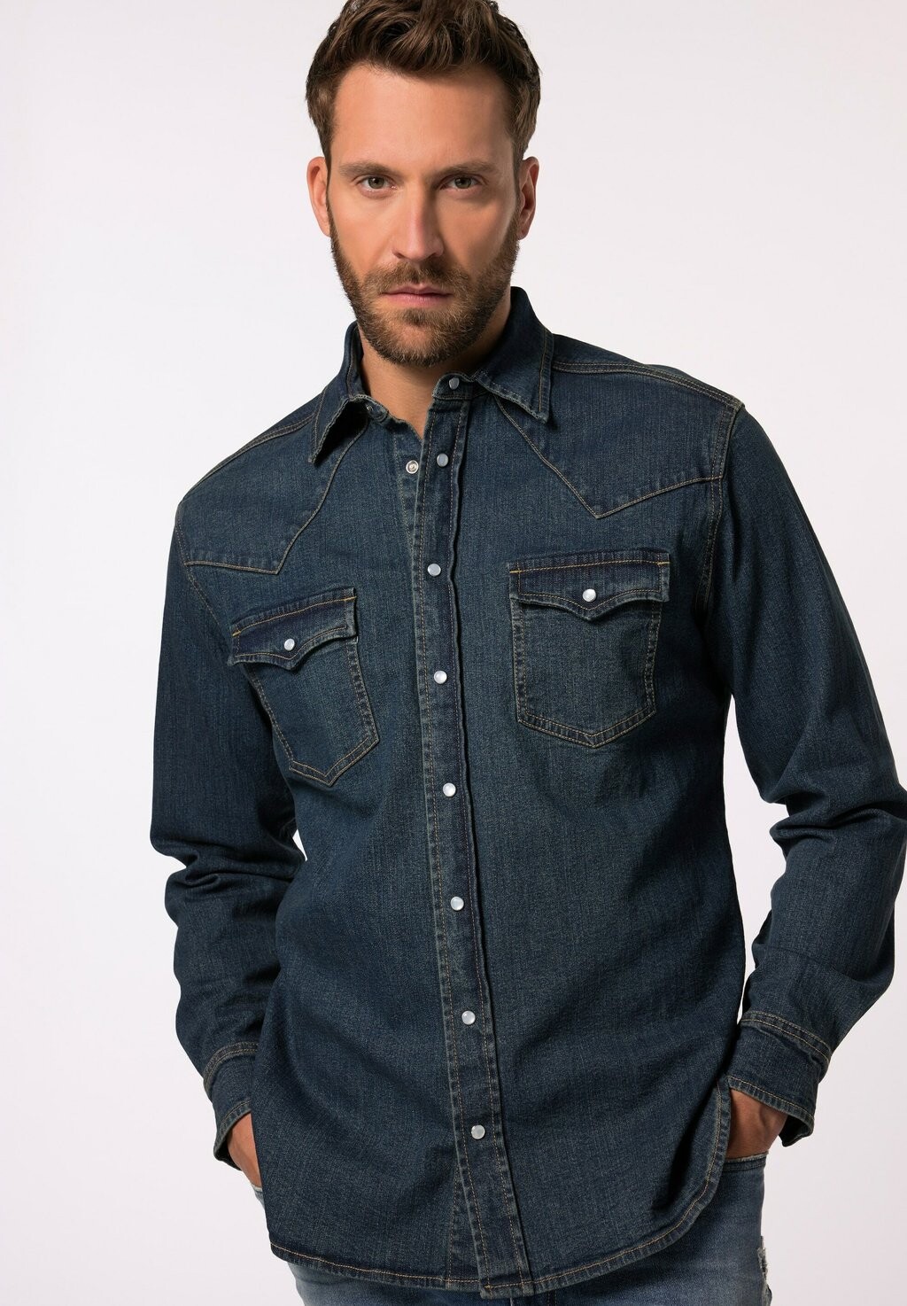 Рубашка LANGARM VINTAGE-LOOK KENTKRAGEN MODERN FIT JP1880, синий деним