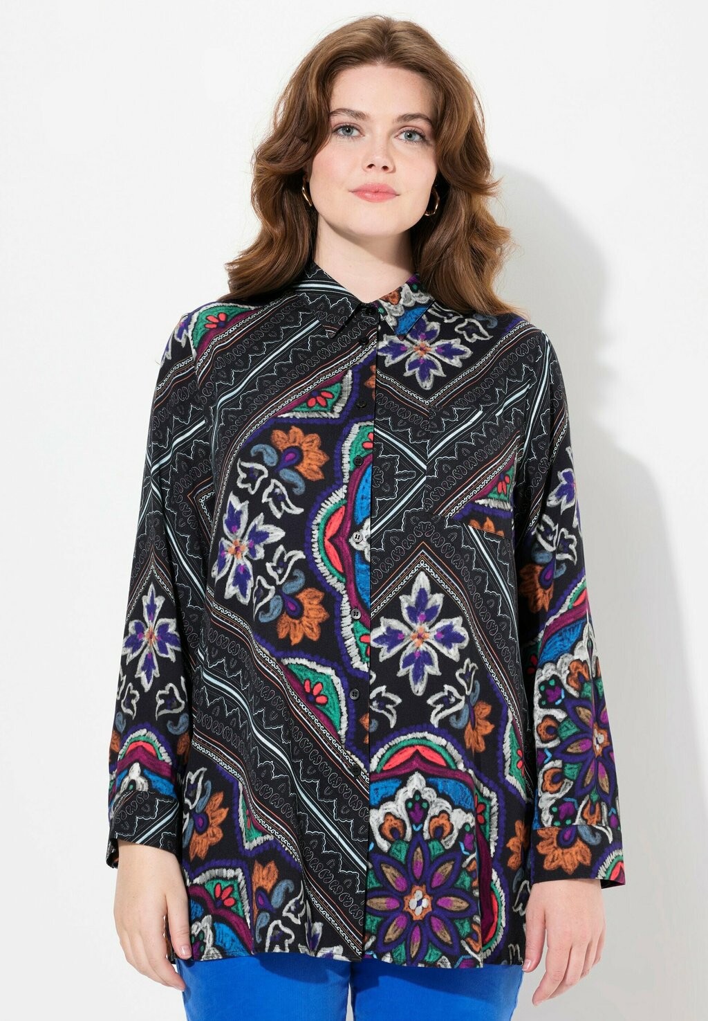 Блузка на пуговицах MIXED Ulla Popken, черный