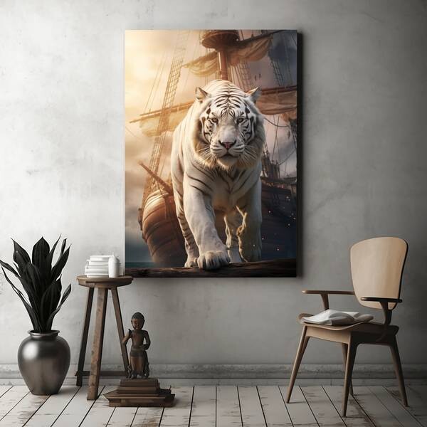 Картина на холсте Hustling Sharks White Tiger, белый 7 012₽