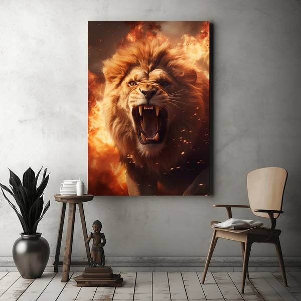 Картина на холсте Hustling Sharks Fire Lion, оранжевый 4 321₽