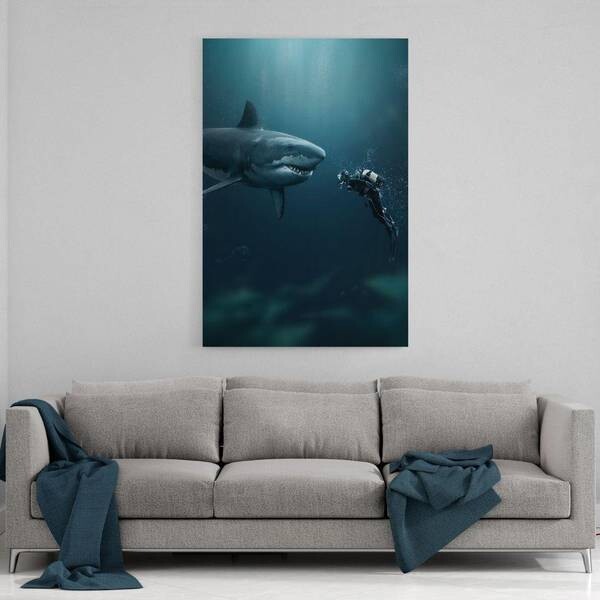 Картина на холсте Hustling Sharks Shark X Diver, синий 6 871₽