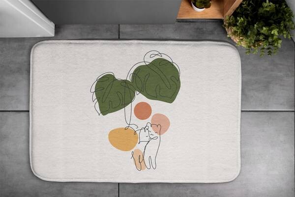 Коврик для ванной Tulup Monstera Katzen, 90x1x90 см, бежевый