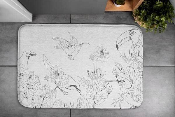 Коврик для ванной Tulup Linien Vögel, 90x1x90 см, белый