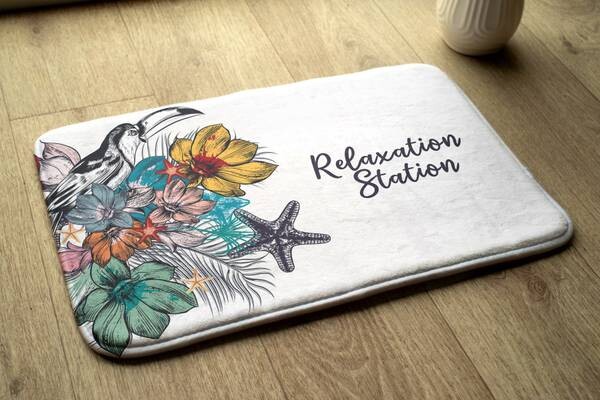 Коврик для ванной Tulup Vögel Blumen, 75x1x75 см, белый