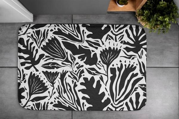 Коврик для ванной Tulup Pflanzen Abstraktion, 75x1x75 см, черный