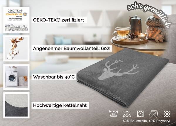 Комплект поставки: 1 двустороннее одеяло с головой оленя