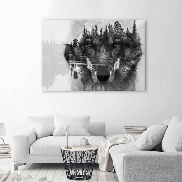 Фреска Feeby Wolf Wald Tiere Schwarz, черно-белый