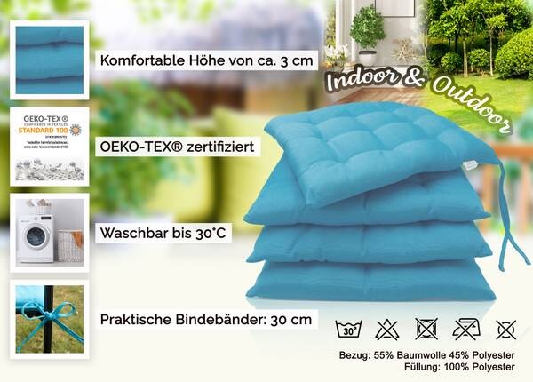 Подушка для стульев Zollner 00000053 4 шт, 40x3x40 см, бирюзовый