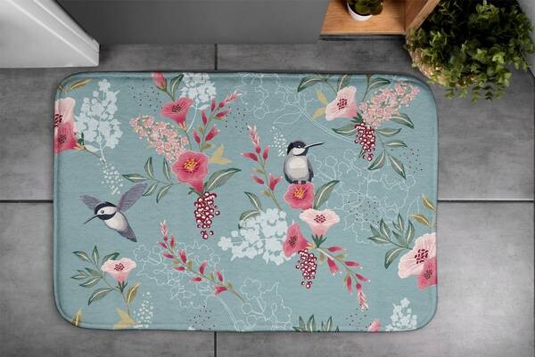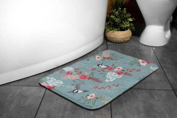 Коврик для ванной Tulup Blumen Vögel, 75x1x75 см, зеленый