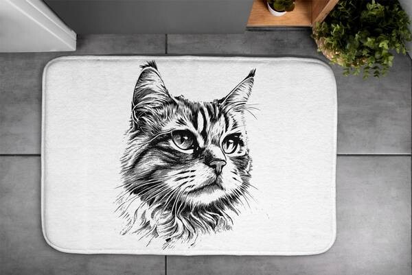Коврик для ванной Tulup Katze Tiere, 90x1x90 см, белый