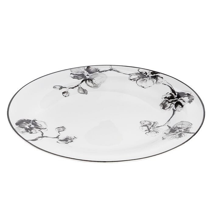 Захватывающий мотив реалистичных орхидей эффектно выделяется на фоне яркого белого фарфора, придавая этой посуде от Michael Aram смелый и искусный вид.