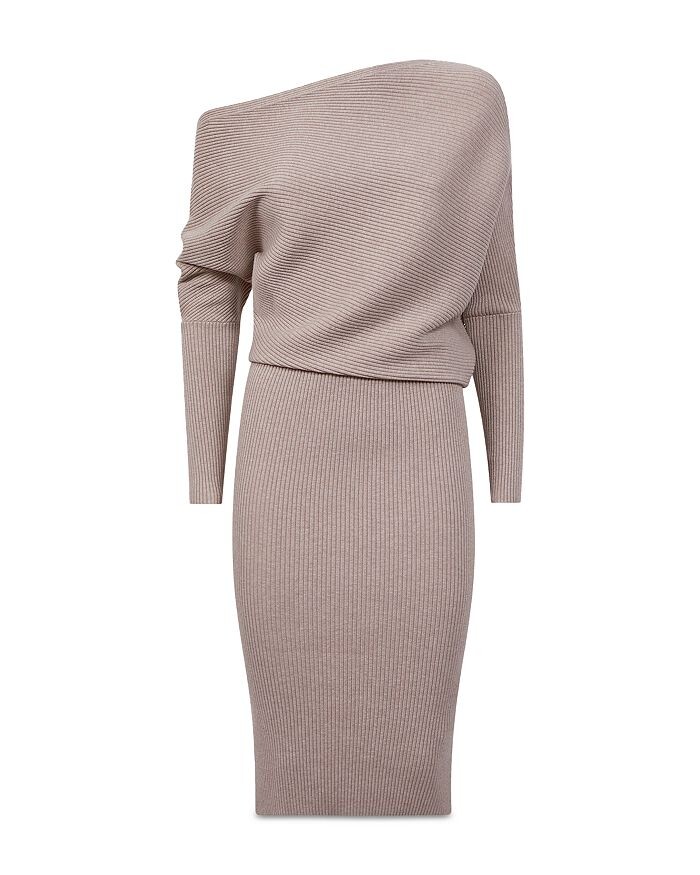 REISS Лара Вязаное облегающее платье с драпировкой, коричневый/бежевый