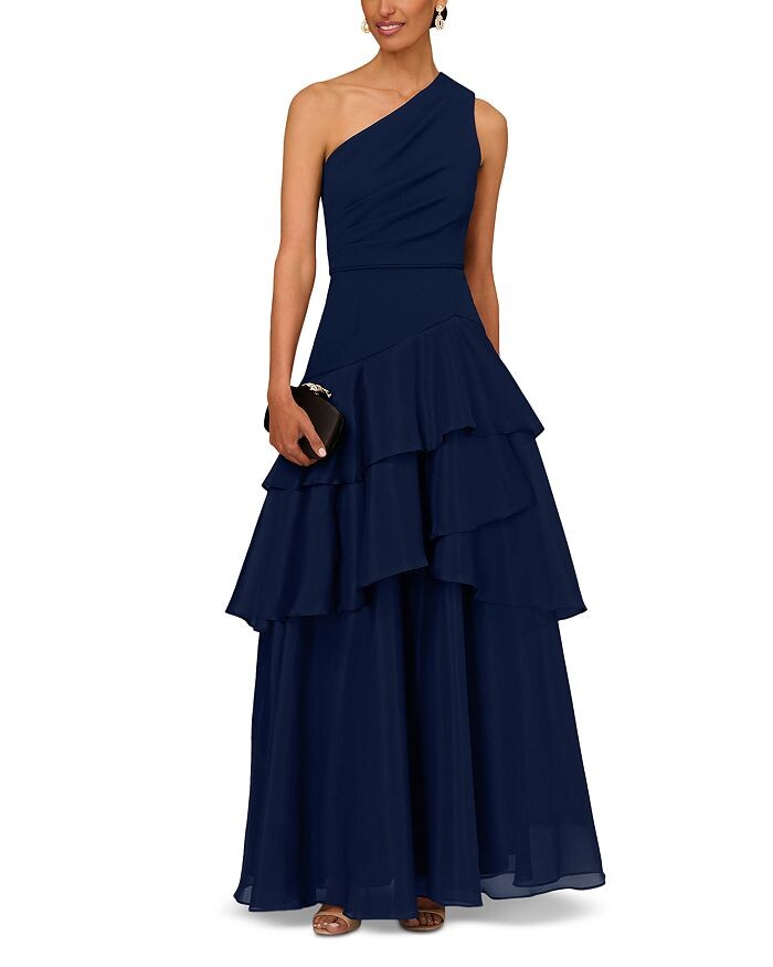 Многоярусное платье на одно плечо Aidan Mattox, синий 36 233₽