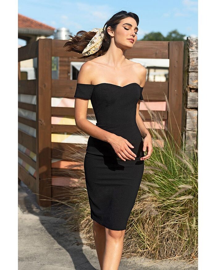 Dress the Population Платье-футляр с открытыми плечами Bailey, черный