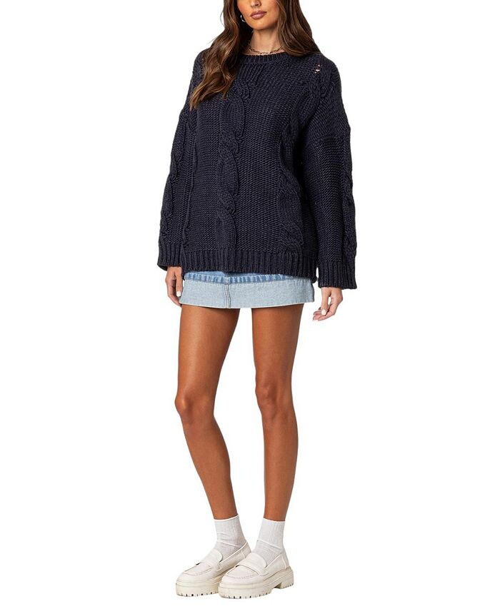 Объемный свитер вязанной вязки Edikted Alene, синий