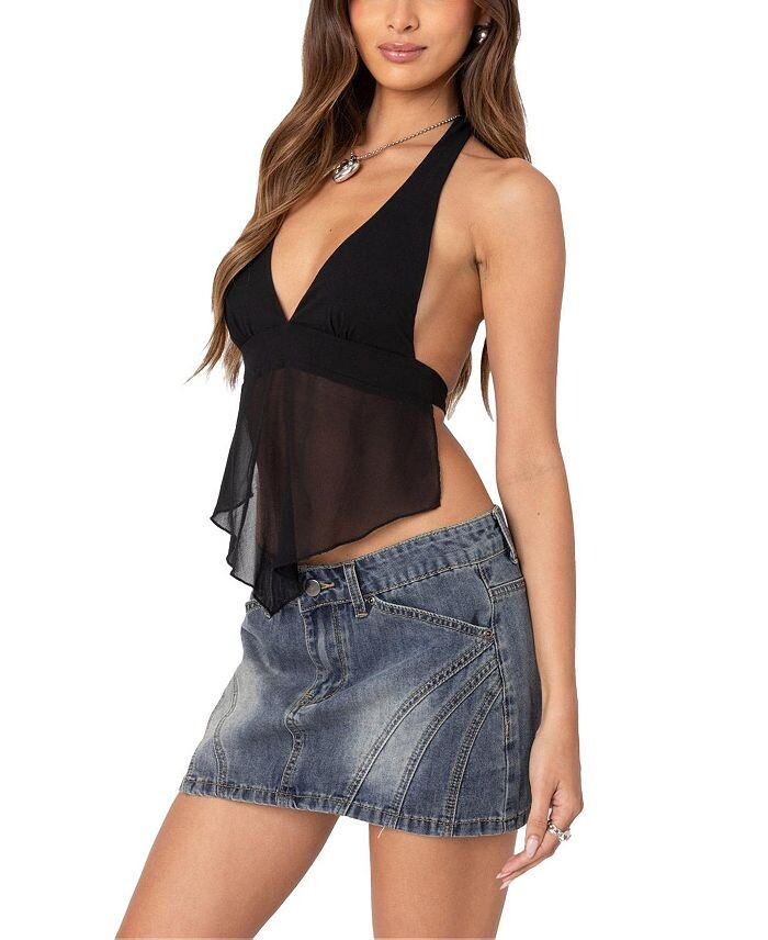 Прозрачный шифоновый топ с бретельками Edikted Ethereal, черный