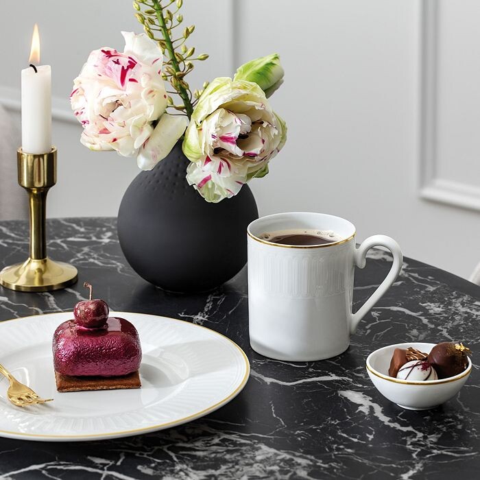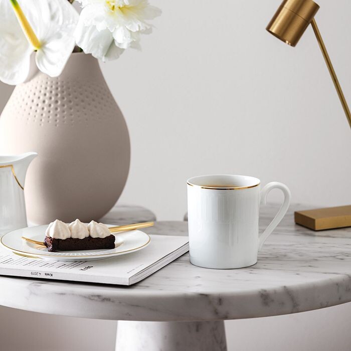 Делая выбор в пользу чистой и чистой эстетики, Villeroy & Boch в своей коллекции Château Septfontaines обращается к элементам минимализма. Эта коллекция, изготовленная из костяного фарфора премиум-класса, отличается сдержанным дизайном и отделкой из драгоценного золота.