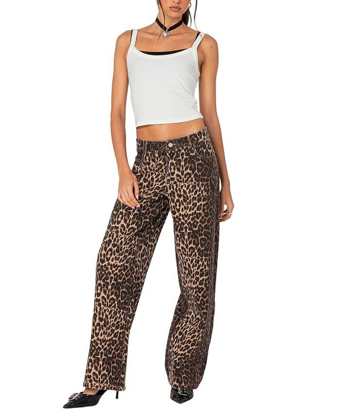 Джинсы Edikted с низкой посадкой и леопардовым принтом, мультиколор