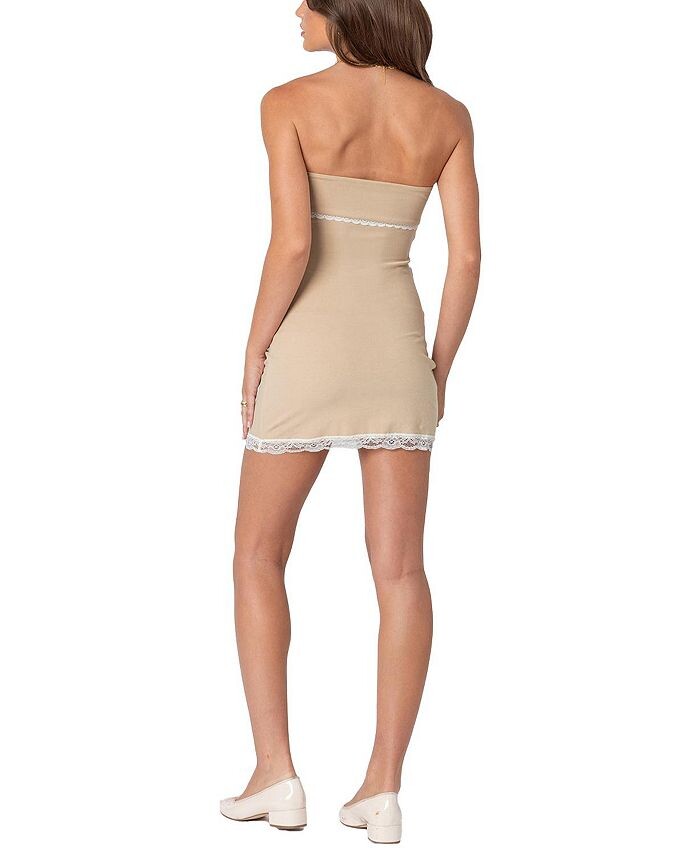 Мини-платье Edikted Miri с кружевной отделкой, коричневый/бежевый