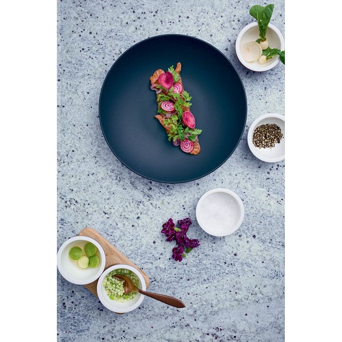 Коллекция Manufacture Rock, сочетающая фарфор с матовой глазурью, придает любому столу ремесленный вид благодаря дизайну, вдохновленному сланцем, и текстурированной отделке.