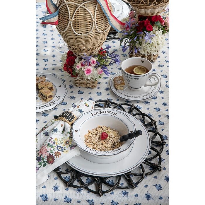 Коллекция, созданная как для влюбленных, так и для мечтателей. Эта шикарная модель, вдохновленная французскими кафе и пикниками в английской сельской местности, украшена воздушными шарами и сердечками, нарисованными вручную.