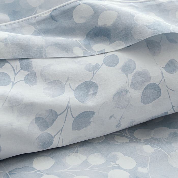 Пододеяльники имеют ледяно-голубой фон с белым принтом на одной стороне